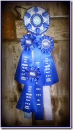 Close to home!! Woohoo! And Jake finished the season with three 1st place finishes and a High in Class ribbon!! I took the ribbons to the yard to get a picture, carefully hung them in the shed with the straw and tried to round him up. Well.. apparently getting his picture taken did not hold a candle to the fun of running through the yard after critters, hawks, other birds, the neighbor’s dog, people on the road, the school bus or any other vehicles, etc. because he pretty much pouted when I tried to get him to pose for a photo! All he did was look out of the shed at Brita who was waiting patiently for him to come back out and play!